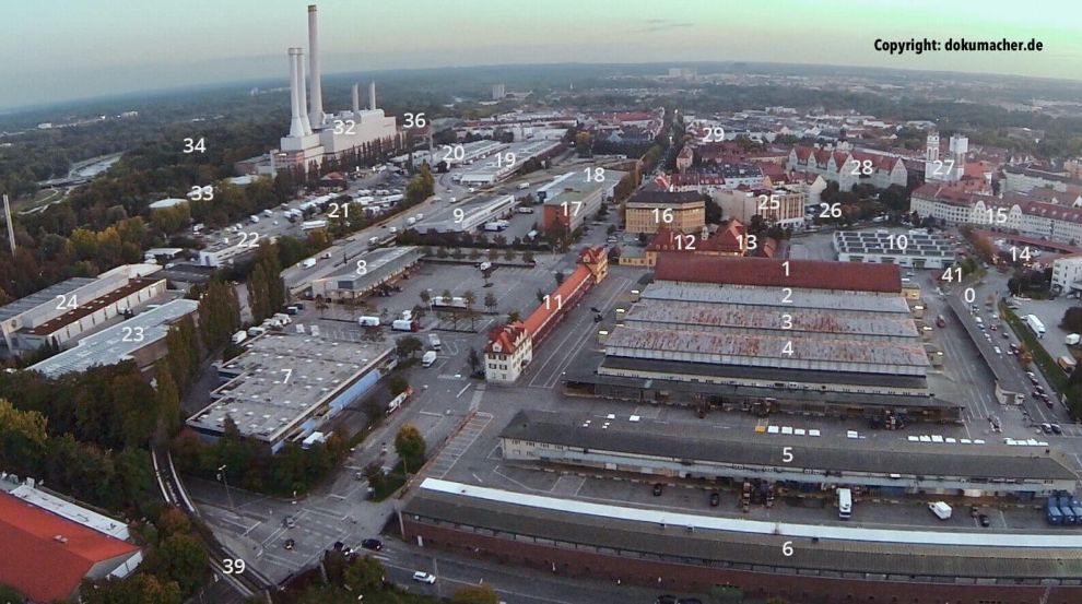 Die Eingangspforte Thalkirchner Straße/Oberländerstraße (Nr. 0) war bis in die 80er Jahre des vergangenen Jahrhunderts Hauptzufahrt zum Großmarktgelände. Sie ist heute für den Schwerlastverkehr gesperrt.